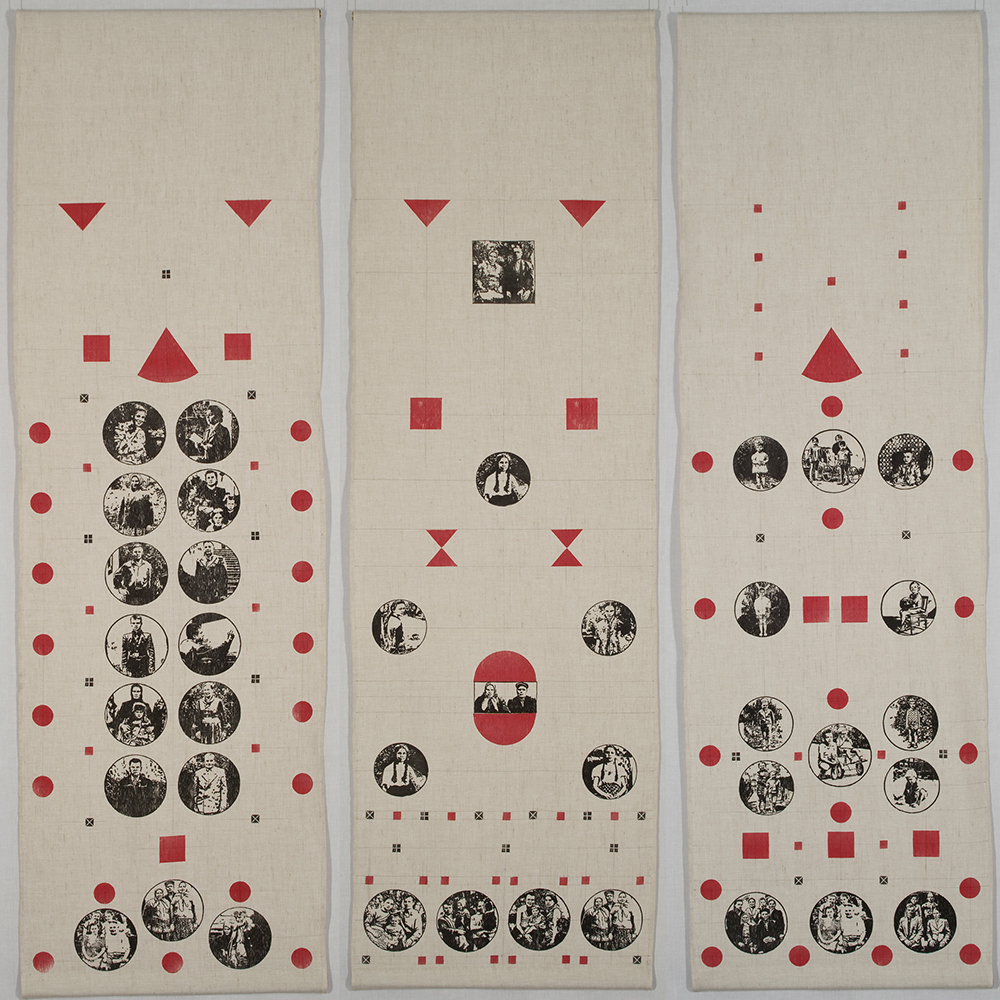 Рушники “Рід”, “Сестри”, “Дитинство” 2011, дереворит, авторський друк на полотні, 192х59см